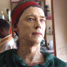 m01.jpg Fåfänga ja – bilden nedan är tagen på en frisörsalong i Indien där jag blev pålurad en total ansiktsbehandling. Aldrig har jag utsatts för en sådan kompakt omsorg av krämer, ångbehandling, gurkskivor, huvudmassage och näshårstrimning. Jag var nog ganska generad – men gillar bilden av mig själv i ansiktsmask. Nervöst utlämnad till fnissande indier ser jag mig i spegeln som en dragqueen i det fördolda eller en turist som tappat kontrollen.