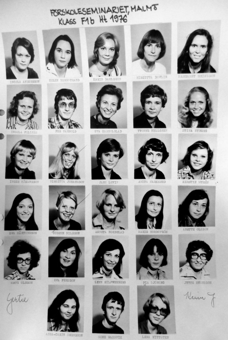 Ann-Christin hittade min klasslista och jag tror att PUL står ut med att jag delar med mig av den. Jag hade störst hår och gula snickarbyxor. Vi var en brokig samling – och jag är nyfiken på var ni tog vägen? Någon som känner någon? Hör av er!