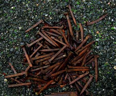 Järnspikarna på bilden hittade jag vid sidan om rälsen mellan Vitaby och S:t Olof.  Förhoppningsvis kommer sommarens järnvägstrafik ske under tryggare former än i fjor då jag tror museitåget spårade ur tre gånger.