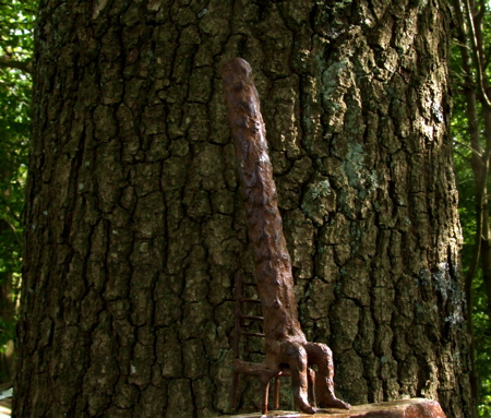 Min lille vän gömmer sig bakom en trädstam. Han tror att om man inte syns så finns man inte.