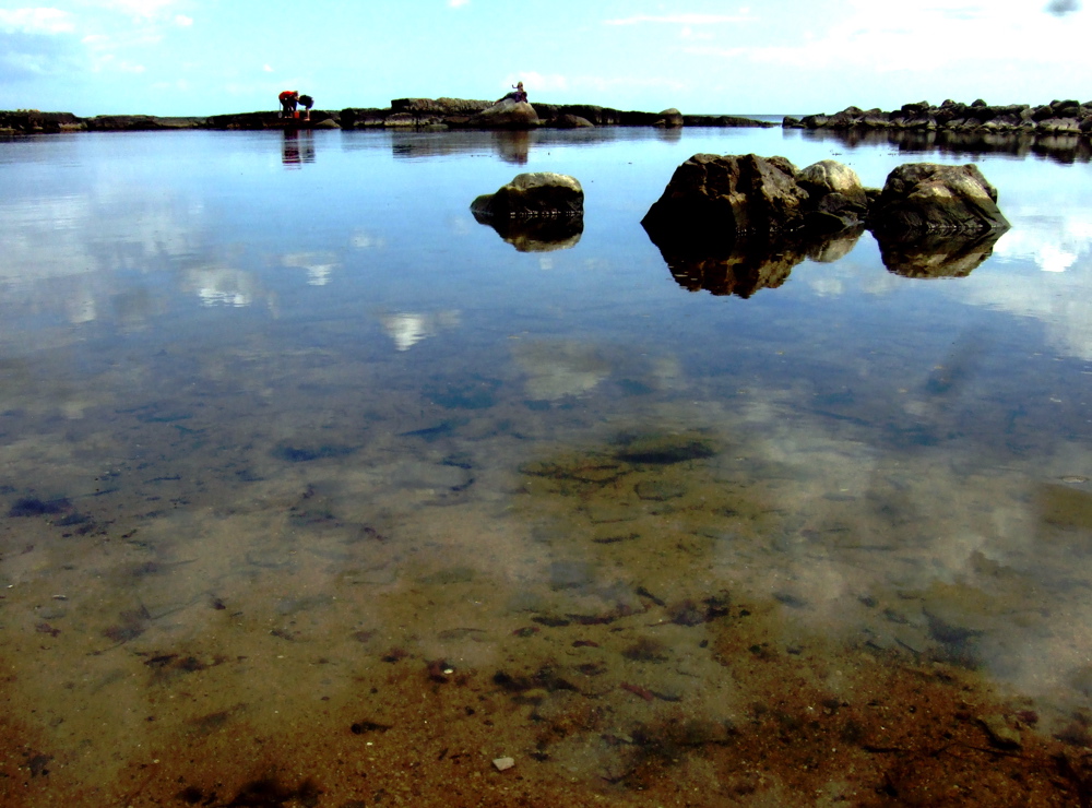 Läckert foto. Som en liten insjö… Roligt med molnreflektionerna i vattenytan. Vatten har en svalkande effekt.