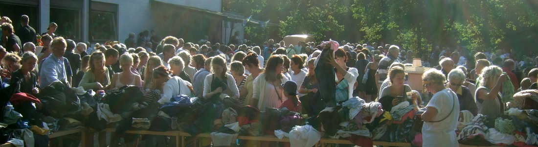 Gislövs loppmarknad ligger på klassisk, men svårparkerad mark. Dansbanan och parken runt Gislövs stjärna lockar många besökare och stämningen runt klädbordet var ganska rivig.
