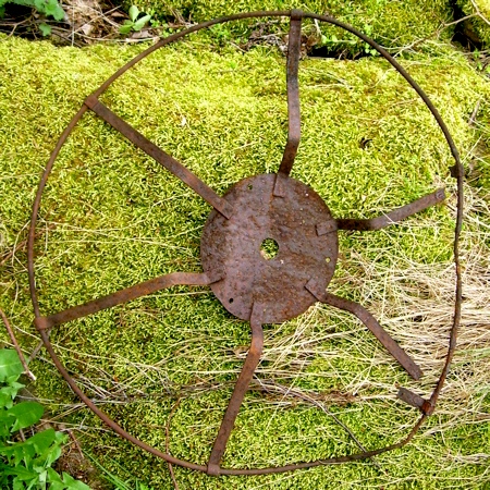 Det rostande hjulet på stengärdsgårdens bädd av mossa och torrt gräs blir en symbol för livets förgänglighet.