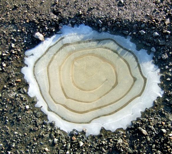 Jag har svårt att förstå varför en frusen vattenpöl formar en spiral, men tror att det är ett tecken på något svårtillgängligt men viktigt.