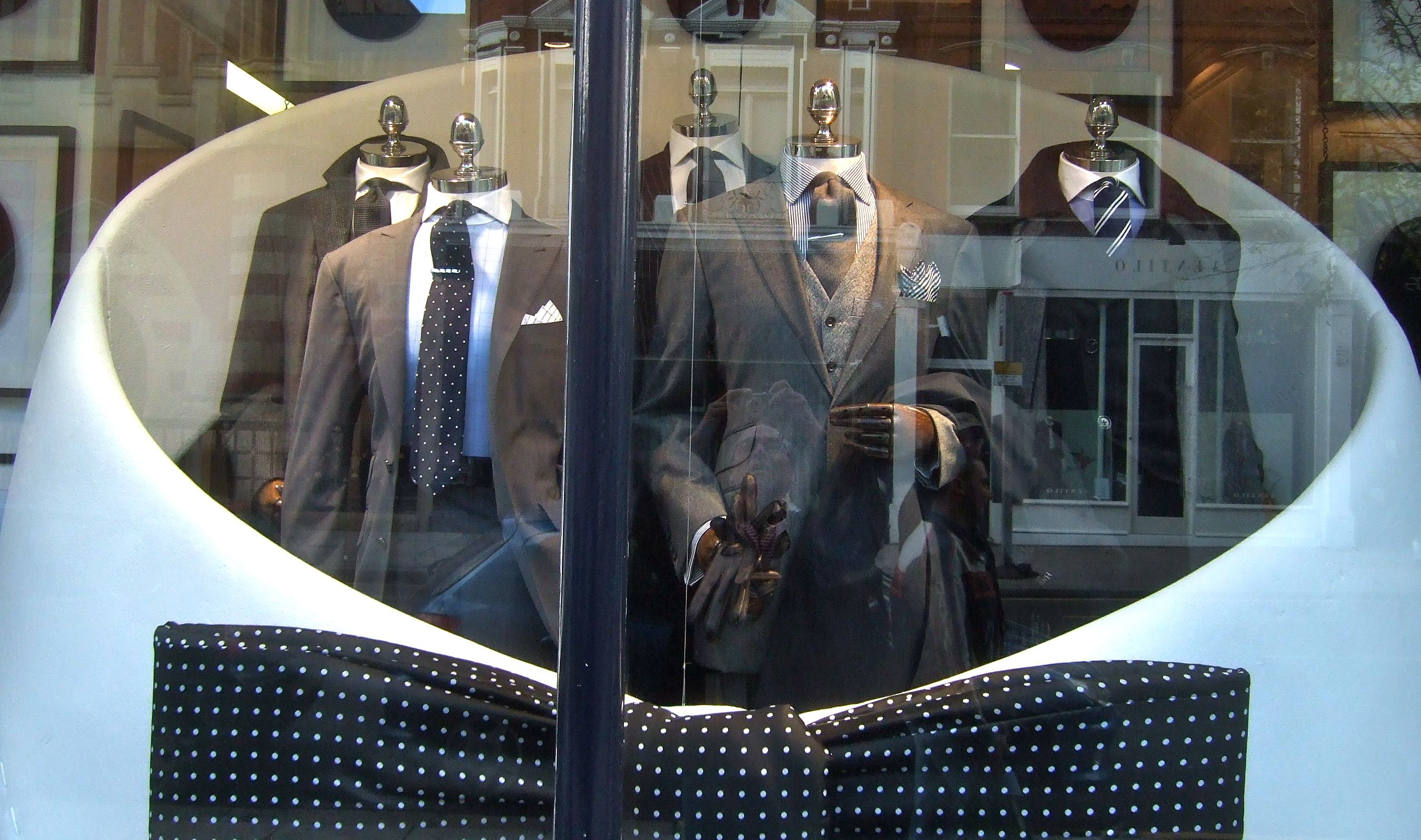 Männen åtnjuter inte samma frihet. Koden är strikt smoking och de som försöker experimentera med udda färger eller tillbehör avfärdas som clowner. Den intervjuade liknar smokingen vid en rustning eller uniform som mannen ikläder sig innan han går ut i strid. Det svarta strama signalerar tidlös makt – oron för att avvika från den trånga normen signalerar något annat.