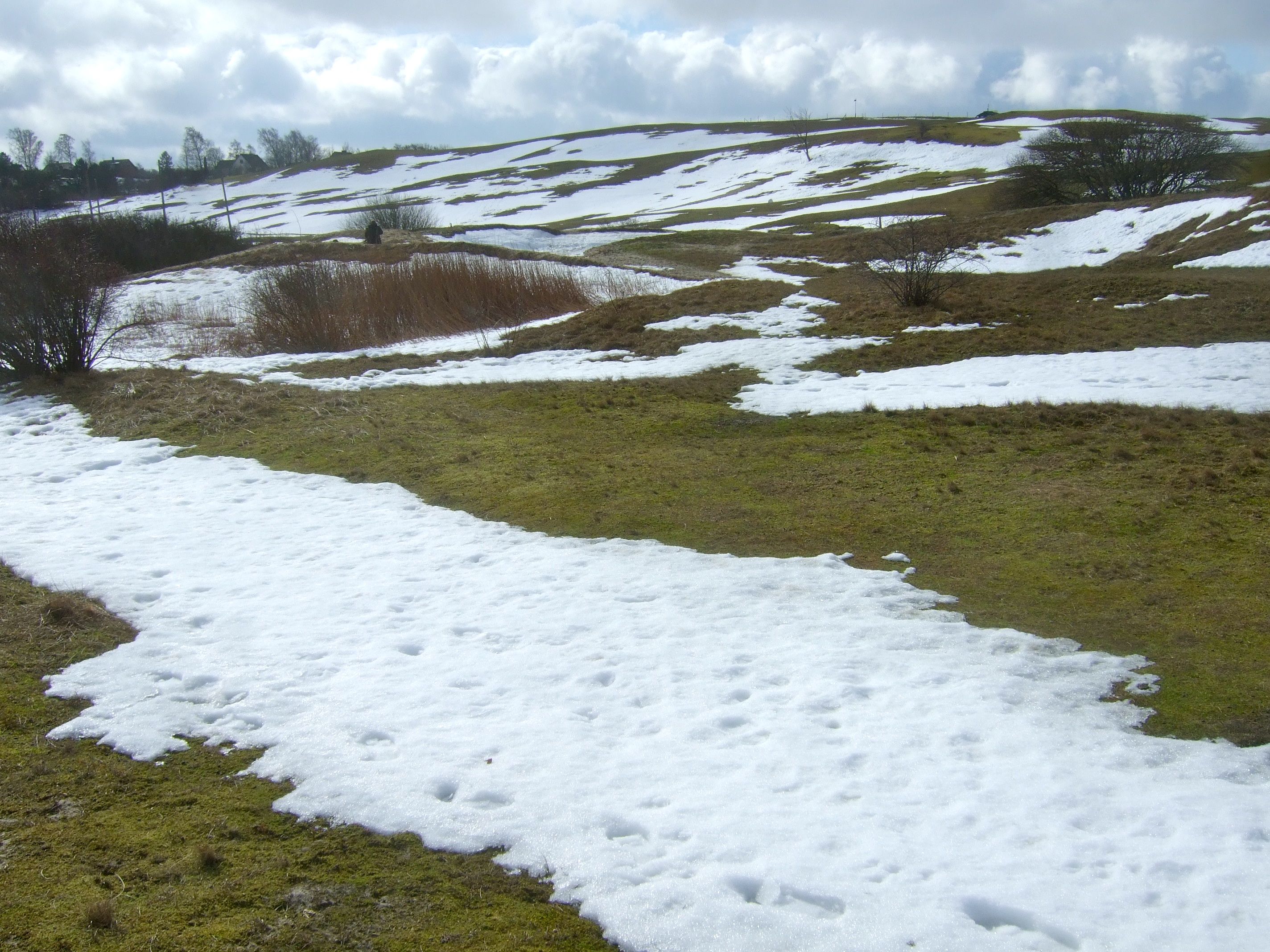 Söndagen pendlar mellan solsken och snöyra. En kall Östersjö lyckas ändå värma bort snön från strandängarna. Så här års hälsar alla vandrare vänligt och lite blygt på varandra. Snart kommer påskveckan och då upphör artigheterna samtidigt som konst, kommers och folkmassor tar över bygden.