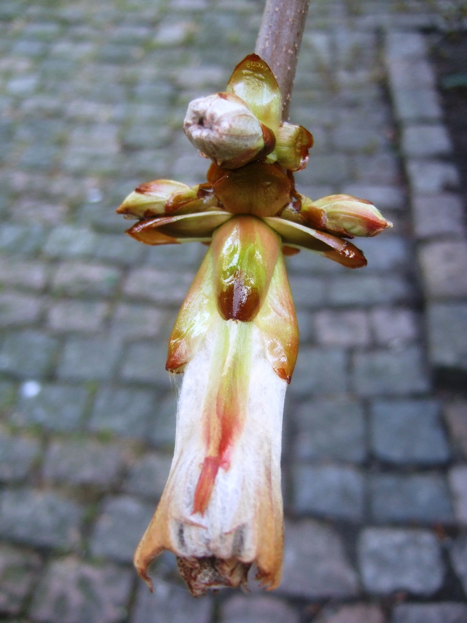Kastanjeträdets knoppar på gården innebär en viss tröst. Våren står inte att hejda.