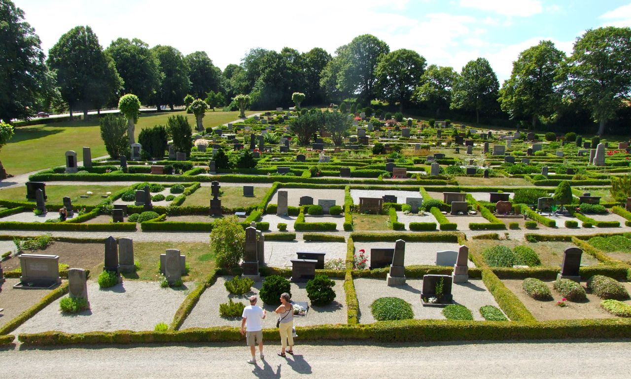 Jag blickar ner över den välskötta begravningsplatsen och imponeras över den höga ambitionsnivån. Som vanligt kan jag inte låta bli att läsa på några gravstenar och nyfikenheten vaknar. Vad döljer sig bakom de här namnen och årtalen?