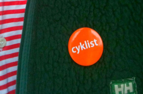 Jag gillar fortfarande din knapp, och grämer mig för att jag inte kan stoltsera med mitt färdsätt lika stilfullt. Jag kompenserar min avundsjuka med att konstatera att jag förmodligen har längre sträcka att cykla i snön.