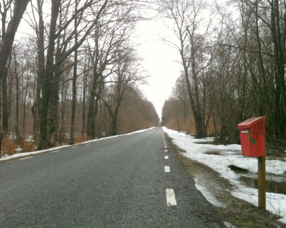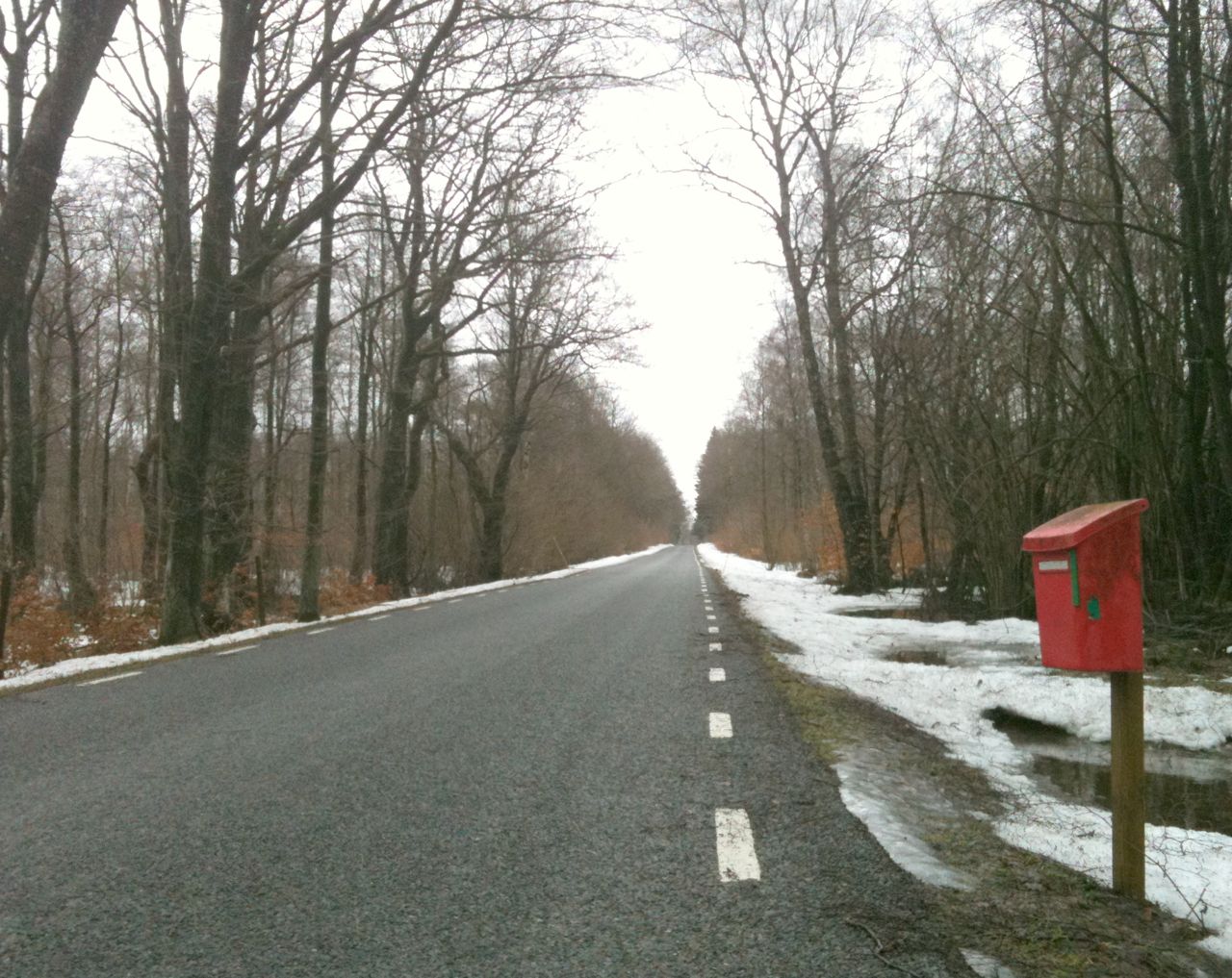 Egentligen skulle jag vilja placera den röda brevlådan mer centralt i bilden och helst enligt regeln om det gyllene snittet. Man kan inte få allt. Men den är viktig!