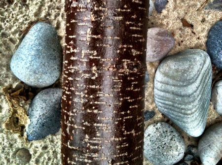 Vi kliver över nedfallna alar och snubblar på de havsslipade stenarna.