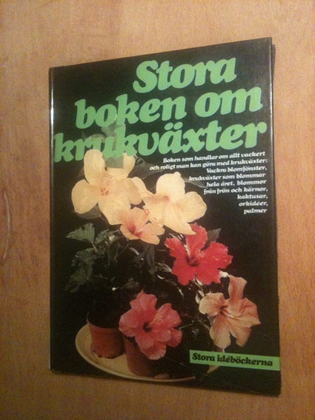 Det är krukväxtboken i öppnat läge. Ipaden vilar tryggt mellan pärmarna. Mitt digitala dubbelliv fortsätter…