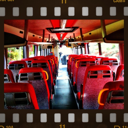 På grund av familjens nya körkort åker jag numera buss. Sval och punktlig anländer 579:an och jag njuter av färden. Min karriär som kollektivresenär börjar bra.