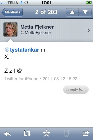 Twitter är ännu rätt så nytt och ovant för många, så om du visar lite tålamod kommer nog Metta att bli mer utförlig och nyanserad i sin kommunikation.