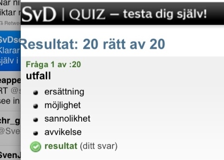 Men i egenskap av gymnasielärare i matte ska jag givetvis ligga nära full pott, allt annat vore en skam. Inser dock att många ungdomar som är lite osäkra i matten kommer att få stora problem med nya XYZ- och KVA-delen. Frågorna är luriga och bygger på att man har god förståelse av matten.