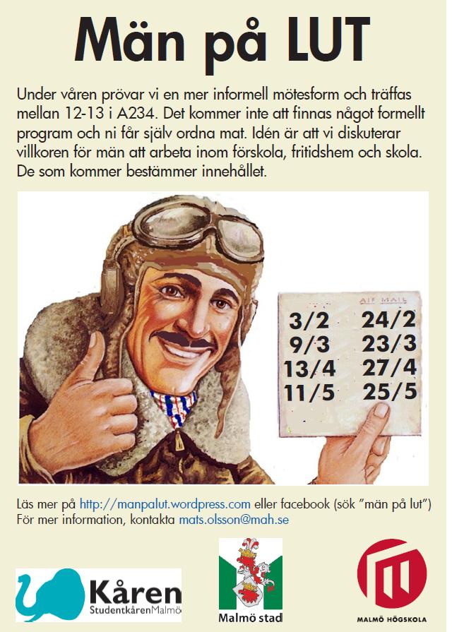 Lärarutbildningens manliga nätverk rullar vidare. Det har varit ganska trögt att träffas på kvällar. Många är trötta och har långt att resa, Nu testar vi något annat. Alla är välkomna.