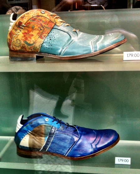 Berlinmåsten 5??? Posted on March 31, 2012 by Editor Jag bad om råd på Twitter innan vi åkte till Berlin och fick tipset om skoaffärerna på Alte Schönhaußer alle. En del modeller är djärva. Jag gillar golvet på Trippen. Men det är något med skoaffärer som gör mig trött. Till sist förstår jag skylten: Tweet Click to email a link to a friend (Opens in new window) Email MoreLike Loading...