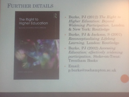 Jag är på temadag om breddad rekrytering (WP=widening partizipation). Penny Jane Burke beskriver hur det engelska klassamhället reproducerar sig själv vid intervjutillfällen.