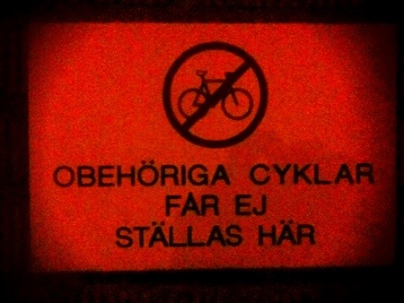 En behörig cykel ska ha legitimation. Första året ska man ha en mentorscykel. Om cykeln har legitimation som MTB kan den inte användas på landsväg. Detta är ett cykelställ för stadscyklar. Smutsiga MTB och kolfiberracers göre sig icke besvär.