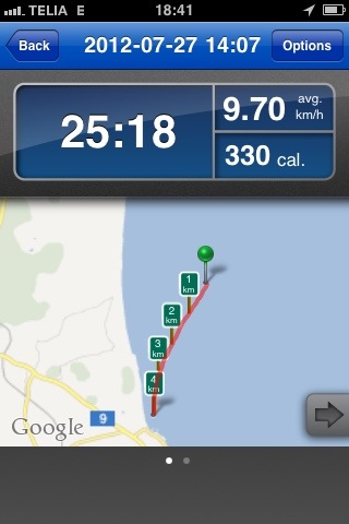 Nu använder jag appen Runkeeper till att beräkna avdrift och position vid torskfiske utanför Vitemölla. Jag är ganska nöjd med att Evinrude 5hk lyckades skrämma upp Ryds 465 i nästan 10 km/h. Dessutom tycks vi ha gjort av med kalorier.