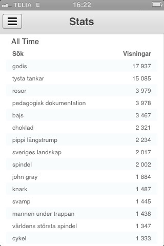Sök och du skola finna? Posted on September 29, 2012 by Editor Jag har ganska många besökare på bloggen. Ibland undrar jag hur de hittar hit. Vad har de här orden med mig att göra? WordPress erbjuder också geografisk statistik för de senaste åtta månaderna: Tweet Click to email a link to a friend (Opens in new window) Email MoreLike Loading...