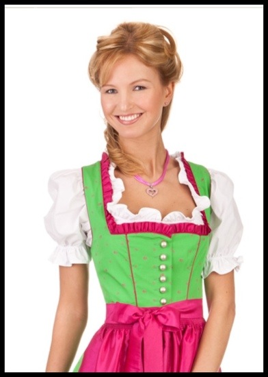 Jag vet inte om den där dräkten är så traditionell. Och vad ska vi säga om hjärtat i ett rosa band kring halsen? Lite väl kommersiellt?
