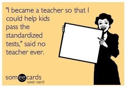 Perhaps rather: I became a teacher so at least someone would actually focus on the learning and building of knowledge, rather than whine about those tests that are actually not really important, just something you pass along the way.