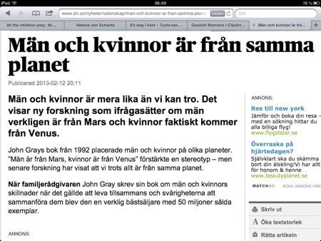 Med risk för att låta som en snobb så tror jag att en akademisk utbildning ger oss bättre förmåga att se oss själva som en den av en struktur som är möjlig att påverka. Uppfattningen “sån är jag och det går inte att ändra på” går att utbilda bort, i alla fall till viss del. För, (tyst berätta inte för nån) män och kvinnor har olikheter som är svåra att kombinera med dagens krav på att alla arbetar full tid och ska försöka få ihop familjelivet också. Men dessa olikheter går att arbeta med, till och med så mycket att de blir till fördel för oss. Vi använder dem som vi uppfattar gynnar oss och lägger bort dem som missgynnar oss och vilka det är beror på hur normalfördelningen skapat just mig och den jag valt att leva ihop med.