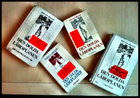Jag har också Den dolda läroplanen som vaken läsning då och då. Varför har du fyra ex? Jag har ett gammalt tummat nummer av tidskriften Krut som jag brukar referera till. Begreppet, den dolda läroplanen, är i behov av avdammning. En skola är inte som den är för att den är en skola, den ingår i ett historiskt situerat diskursivt tänkande som varje lärare behöver se, reflektera över och positionera sig själv i. Skönt att vi är två som tar fram den där texten då och då och problematiserar skolan i ljuset av idag. Igen och igen.
