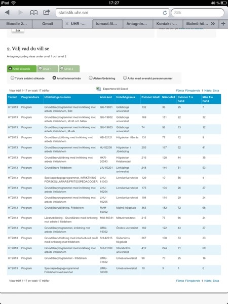 Förskollärare hittar jag under tre rubriker. Grundlärare med inriktning mot fritidshem… Nej det hittar jag inte alls!