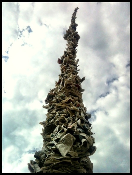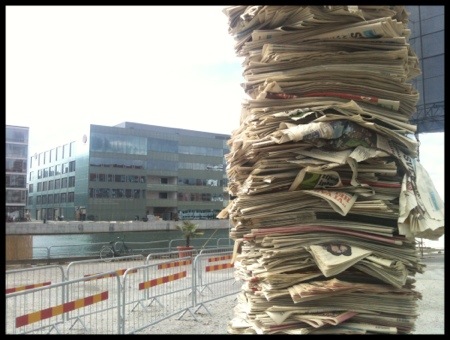 Dagen före Malmöfestivalen Posted on August 15, 2013 by Editor Konstnärer bygger ett torn av tidningar på Posthusplatsen. Jag är mottaglig för symboliska tolkningar. I bakgrunden skymtar min arbetsplats. Konstnärer jobbar med tema återvinning och containrar är utgångspunkten. Tweet Click to email a link to a friend (Opens in new window) Email MoreLike Loading...