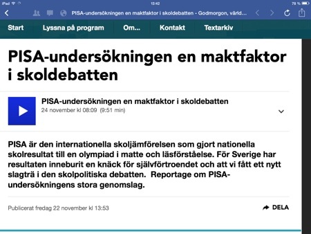 Lyssnar på P1 och inser att det snart är dags igen. Politiker kommer att använda resultatet från PISA-undersökningen till att lufta käpphästarna ett varv till.