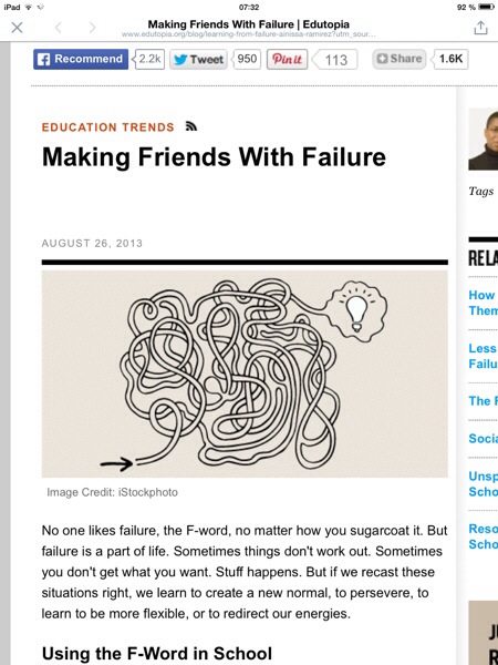 Schools have this failure-thing, the F-word, all wrong. They focus on getting the answer, but it is the questions and the mistakes that are actually more instructive. It’s in these spaces where we learn. I often hear students preface their question with, “This might sound stupid, but . . . ” Students fear sounding dumb — they fear being viewed as a failure. Shouldn’t it be OK to ask questions in a classroom?