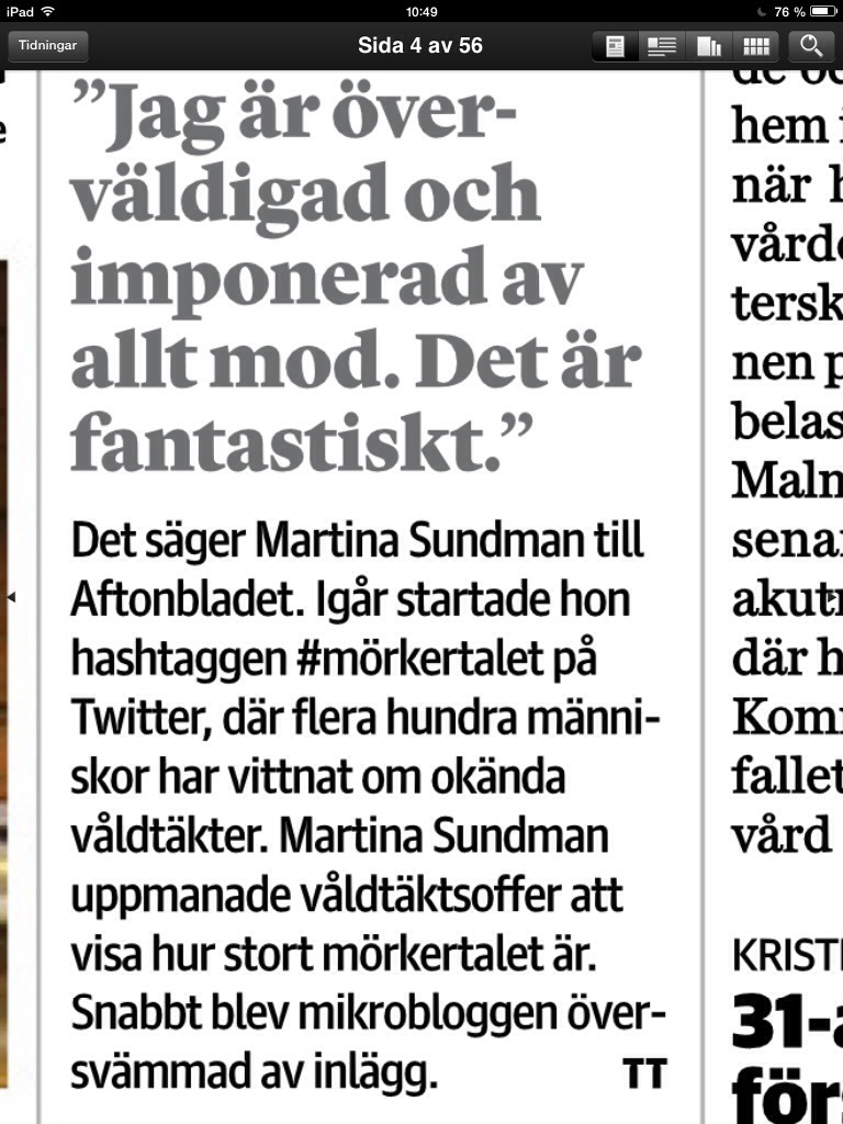 Metaforer är besvärliga och många missbrukar naturkatastrofer som slagkraftiga bilder. (Jfr “twitterstormar” och “bloggbävningar”). Jag tror inte att att hashtaggen #mörkertal orsakade någon översvämning på Twitter. Möjligtvis höjdes tidvattnet i enstaka personers flöden.