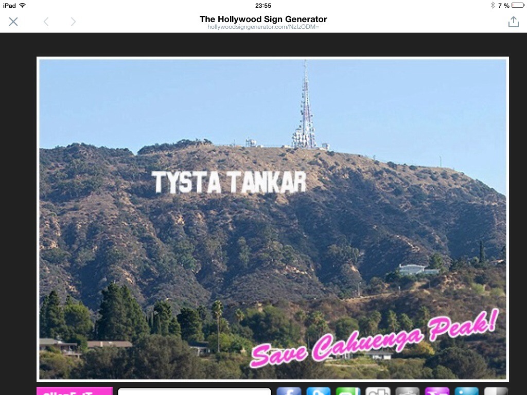 Äsch Posted on February 26, 2014 by Editor Help us save Cahuenga Peak, home of the Hollywood Sign! http://t.co/7KAxzrBADvOk – jag var tvungen att prova — Mats Olsson (@tystatankar) February 24, 2014 Tweet Click to email a link to a friend (Opens in new window) Email MoreLike Loading...