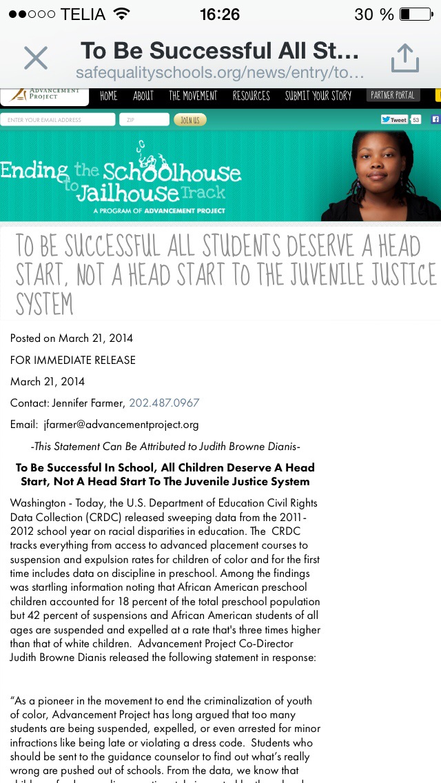 Nja, jag förstod det som att det är tre gånger större risk att ett “svart” barn blir hemskickad eller relegerad än att ett “vitt” blir det. Afroamerikaner utgör bara drygt 12% av USAs befolkning. Afroamerikaner är klart överrepresenterade i de lägre socialgrupperna i USA, vilket torde förklara en hel del. Sen kan det definitivt vara så att bilan faller lättare för den med mörkare hudfärg. De kör statistik efter ras, men jag undrar hur de definierar afroamerikan, hispanics, caucasian och asian. Vilken ras blir ett barn som är “interracial”? Där kanske det har en relevans för sociologisk forskning, men inte i Sverige. Intressant att de som klarar sig allra bäst är asians och jews. Högst utbildning, lägst arbetslöshet, minst kriminalitet osv. Det finns en stor del som kallas “white trash” och “red necks” långt ner på den sociala stegen, vilka drar ner vitas medelvärde oavsett vilka maktpositioner vita har i samhället.