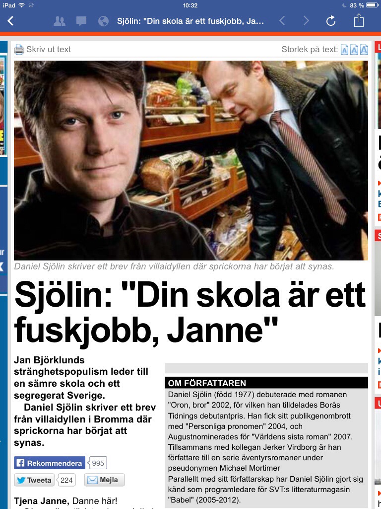 Det är inte Jan Björklunds stränghetspopulism som leder till en sämre skola och ett segregerat Sverige. Det är kommunaliseringen av skolan, avskaffandet av enhetsskolan, införandet av friskolor och idioter (ideologer) på Skolverket som gett detta resultat.