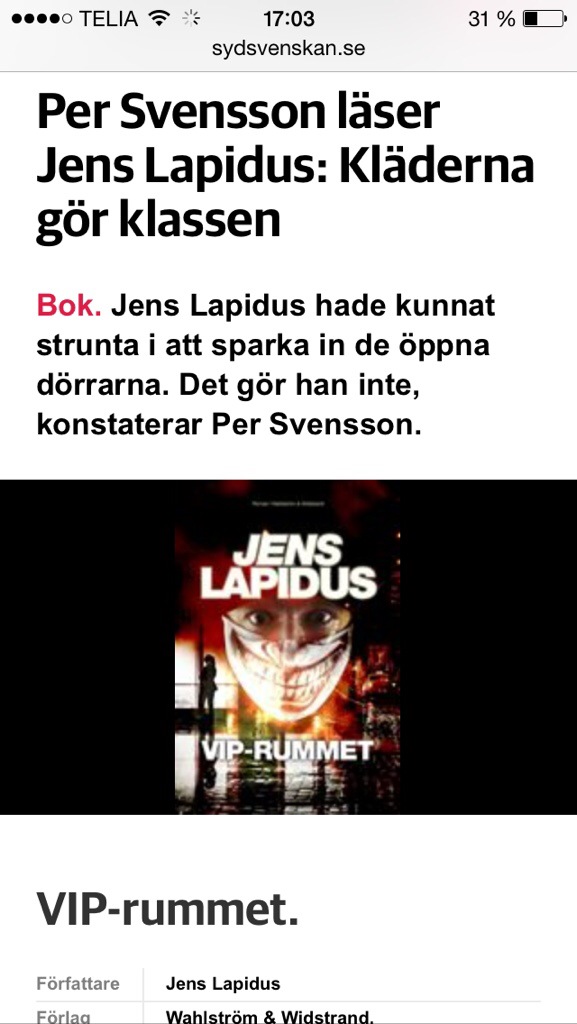 Det är dessa kvarter, det samtida Sveriges extremt jag-centrerade och därför också extremt konformistiska VIP-rum, som utgör ena halvan av Jens Lapidus litterära universum. Den andra halvan är Stockholms södra förorter.Formellt är det kriminalromaner Lapidus skriver, men det som gör dem läsvärda är något annat: Ambitionen att vara en Biblioteksgatans och Brandbergens Balzac, att göra ett tvärsnitt genom det tidiga 2000-talets svenska klassamhälle.