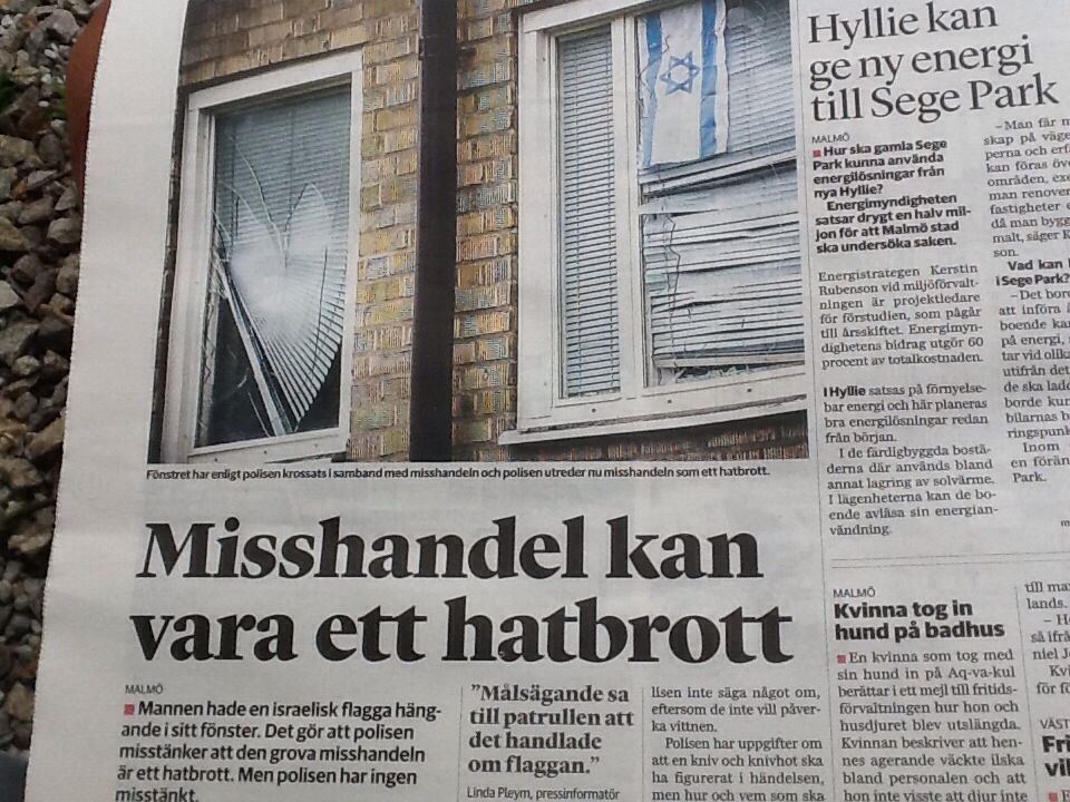 Den misshandlade mannen har en israelisk flagga hängande i sitt fönster.