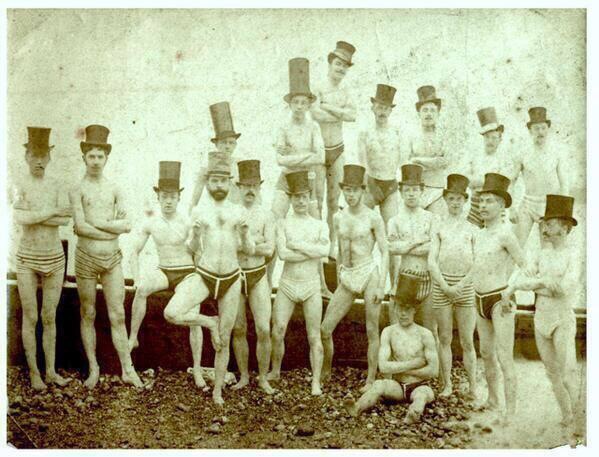 Brightons simklubb 1863. Jag är osäker på om det finns ett stänk av lekfullhet i bilden. Man kan inte lita på engelsmän.