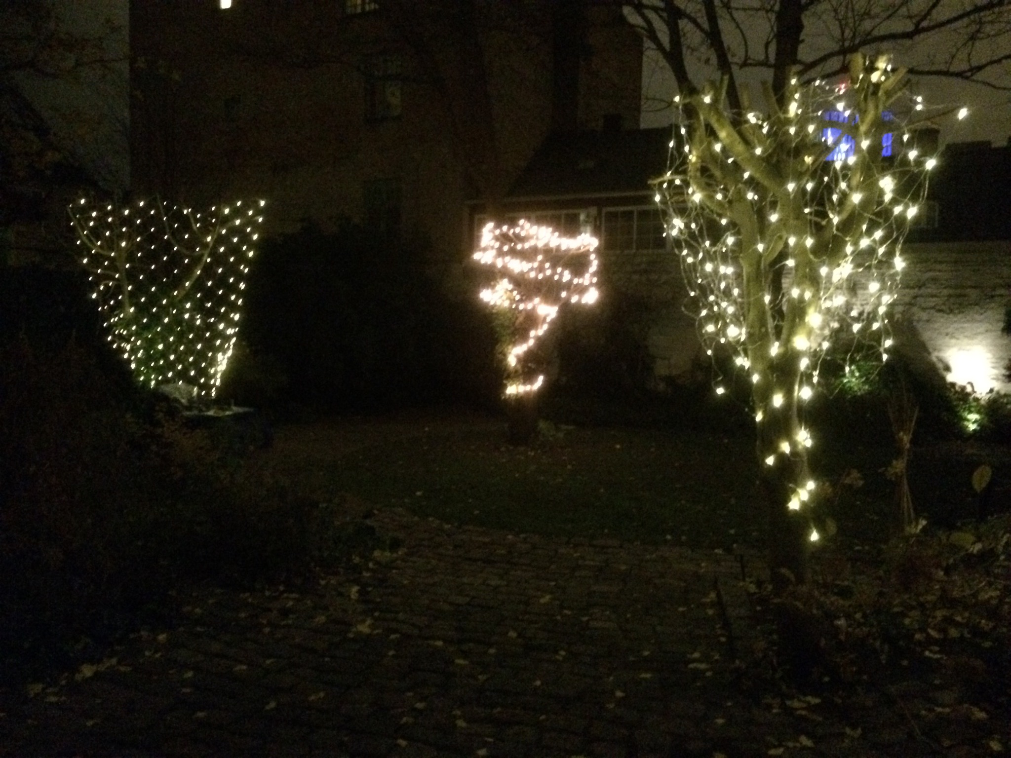 Jag flyr pedagogik och riksdagspolitik – nu är det julpynt som gäller. Grannen och jag har dekorerat gården. Vi är mycket nöjda.