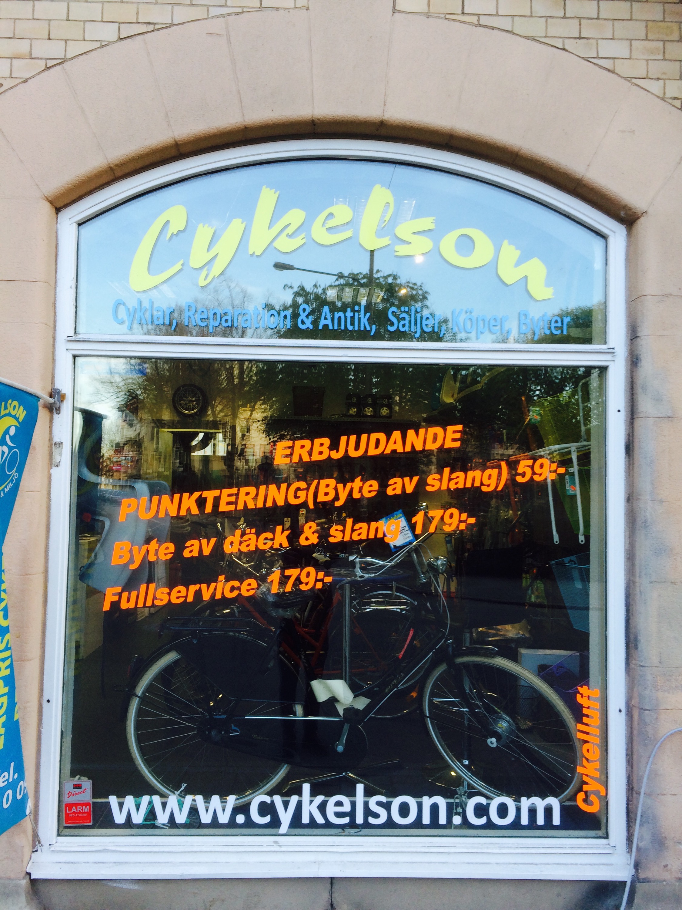 Cykelson? Posted on April 27, 2015 by Editor Cykelhandlarna vid Möllevångstorget har fantasifulla namn – eller väldigt informativa. Tweet Click to email a link to a friend (Opens in new window) Email MoreLike Loading...
