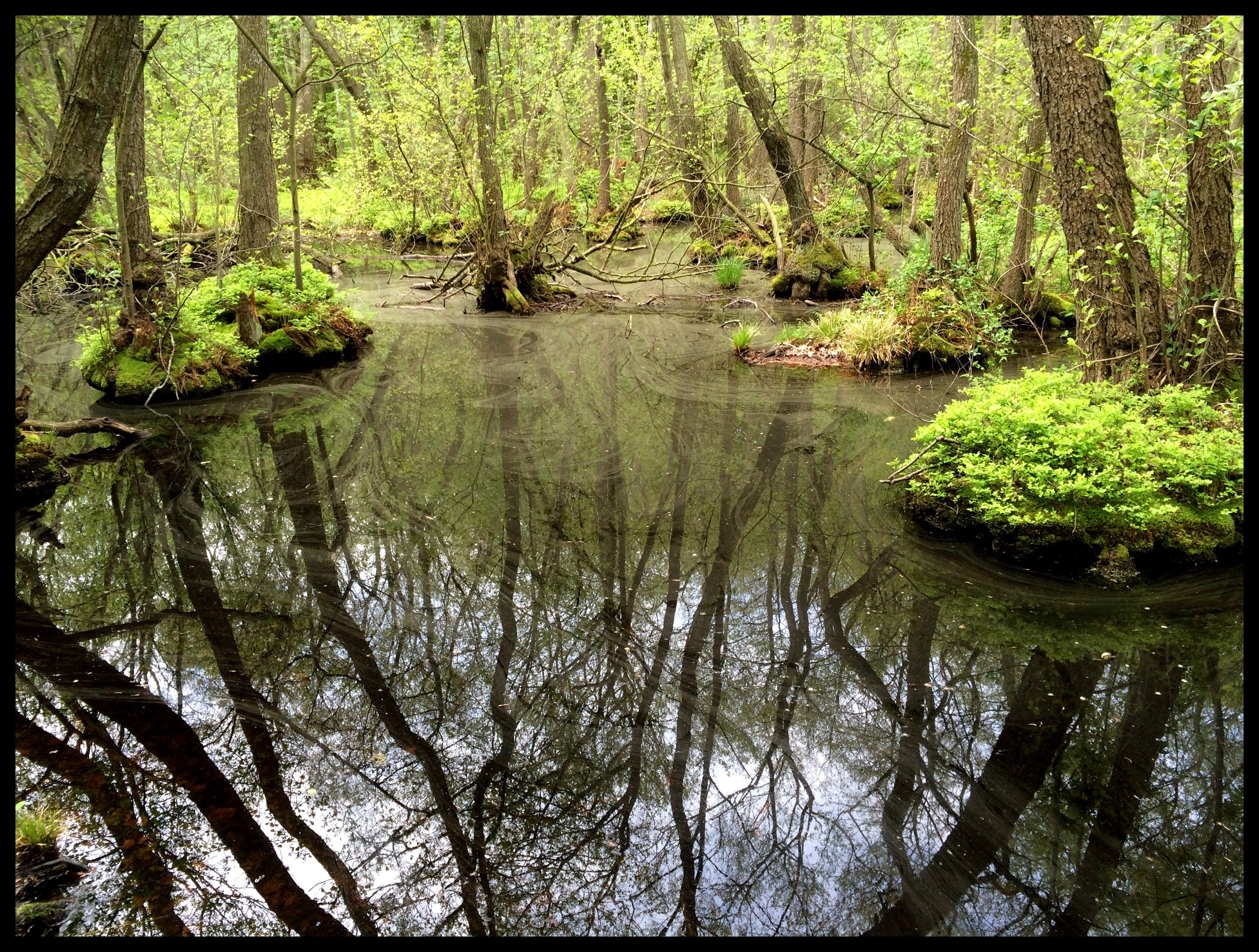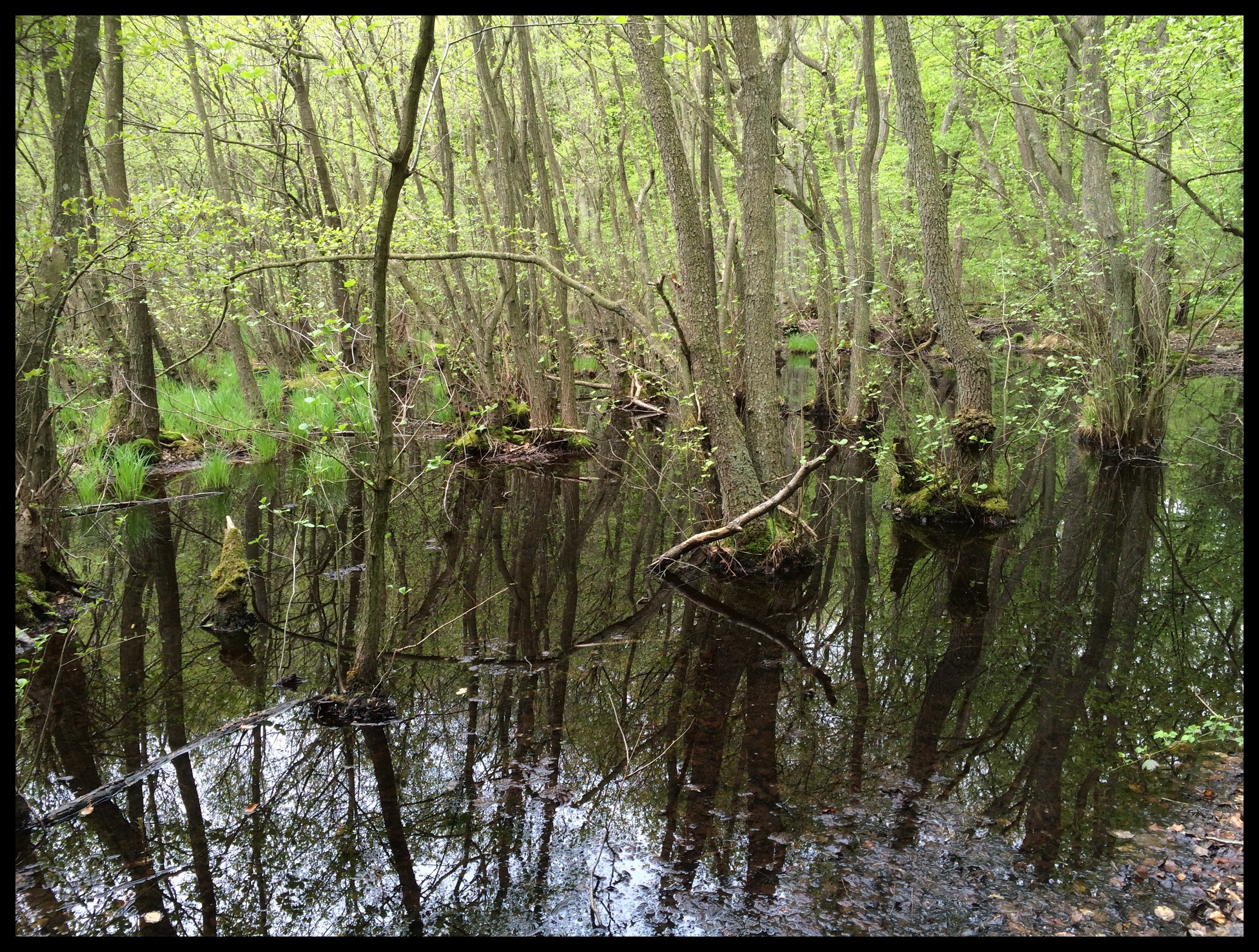 Vi går längs alekärret väster om huvudet och njuter av stillheten. Naturens eget reningsverk fångar upp kvävet.
