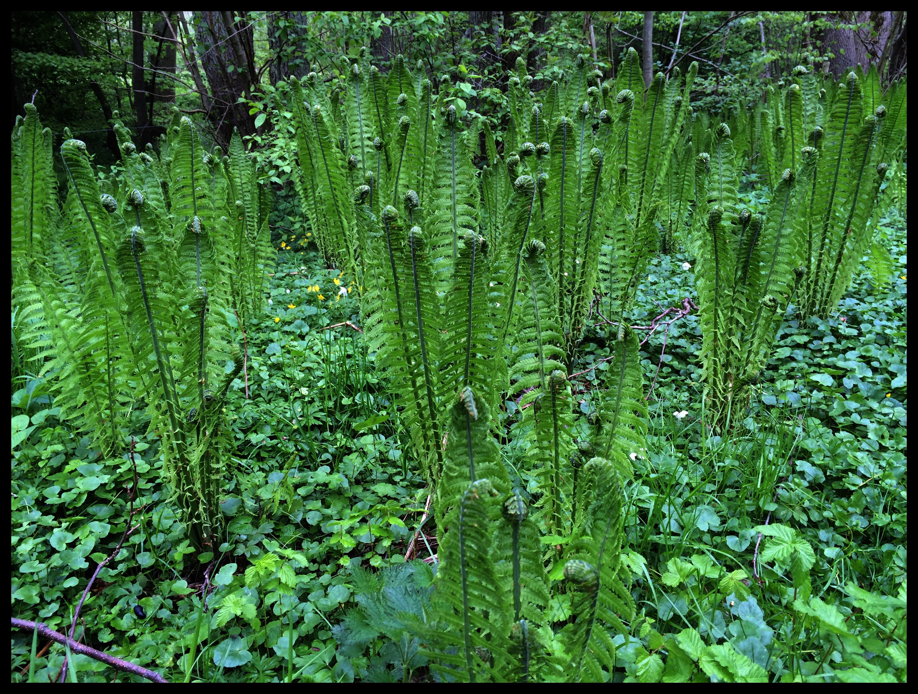Vi går upp mot Hjälmaröd och beundrar ormbunksparaden.