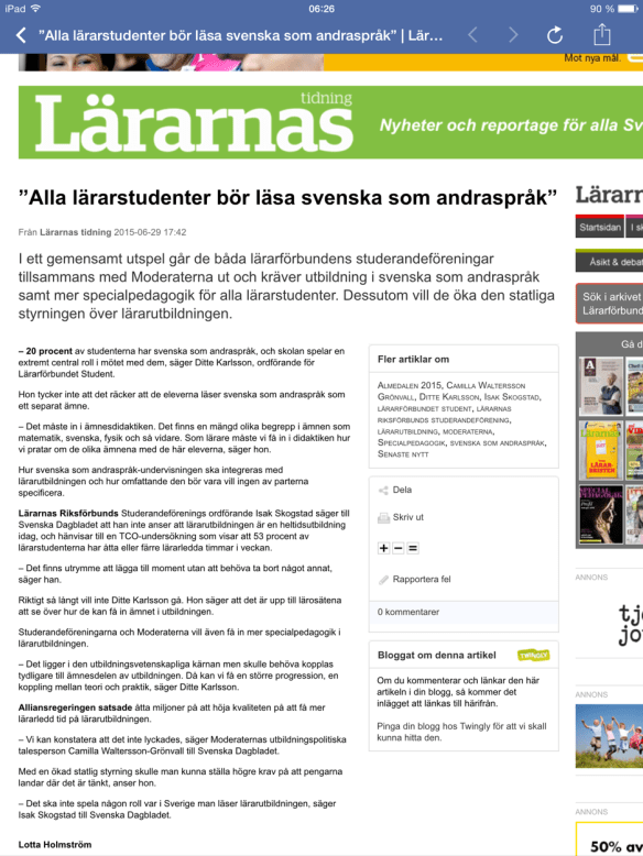 – visa förmåga att identifiera sitt behov av ytterligare kunskap och utveckla sin kompetens i det pedagogiska arbetet.”