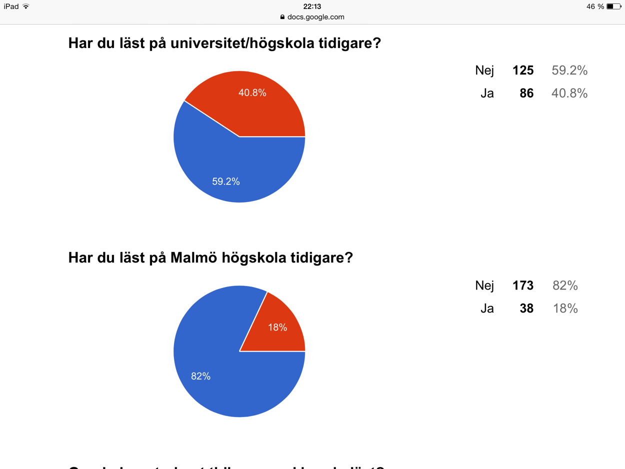 Vi har gjort en ganska ambitiös kartläggning av våra nya studentet med närmast 100% svarsfrekvens.