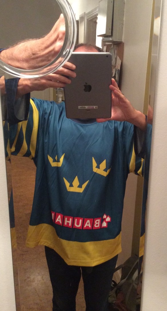 Outfit? Posted on November 10, 2015 by Editor Vi handlar för 500:- och får en hockeytröja på köpet. Jag är inte intresserad av hockey och känner en viss yrsel av färgen. Hur tänkte dom? Tweet Click to email a link to a friend (Opens in new window) Email MoreLike Loading...