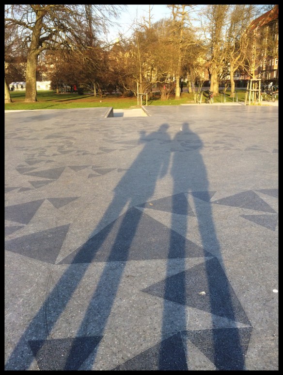 Vi går genom staden och låter våra skuggor falla över Magistratsparken. Malmö stad bjuder barnfamiljer på underhållning och i kväll blir det fyrverkeri och dans.
