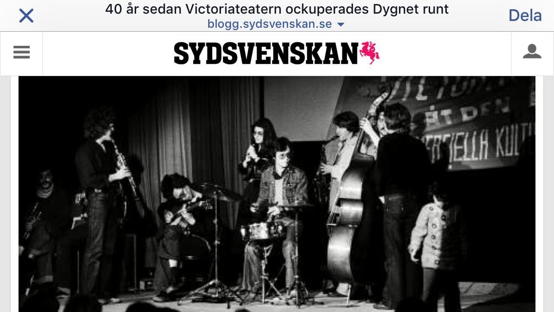 40 år sedan Victoriateatern ockuperades Posted on February 27, 2016 by Editor Länk Jag var där och spelade gitarr. Tweet Click to email a link to a friend (Opens in new window) Email MoreLike Loading...