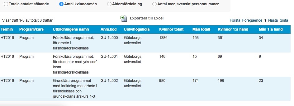 Jag Lägger upp antagningsstatistik för landets alla förskollärar- och lågstadielärarutbildningar.